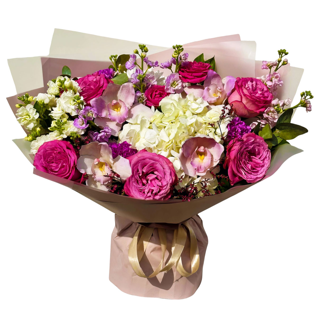 | Состав | Гортензии, Маттиола, Орхидеи, Пионовидные розы, Розы, Розы Дэвида Остина |
