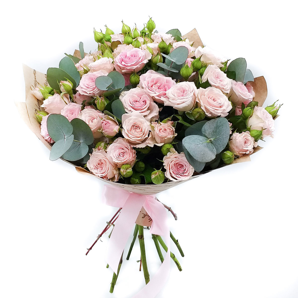 | Состав | Кустовые розы, Розы, Эвкалипт |