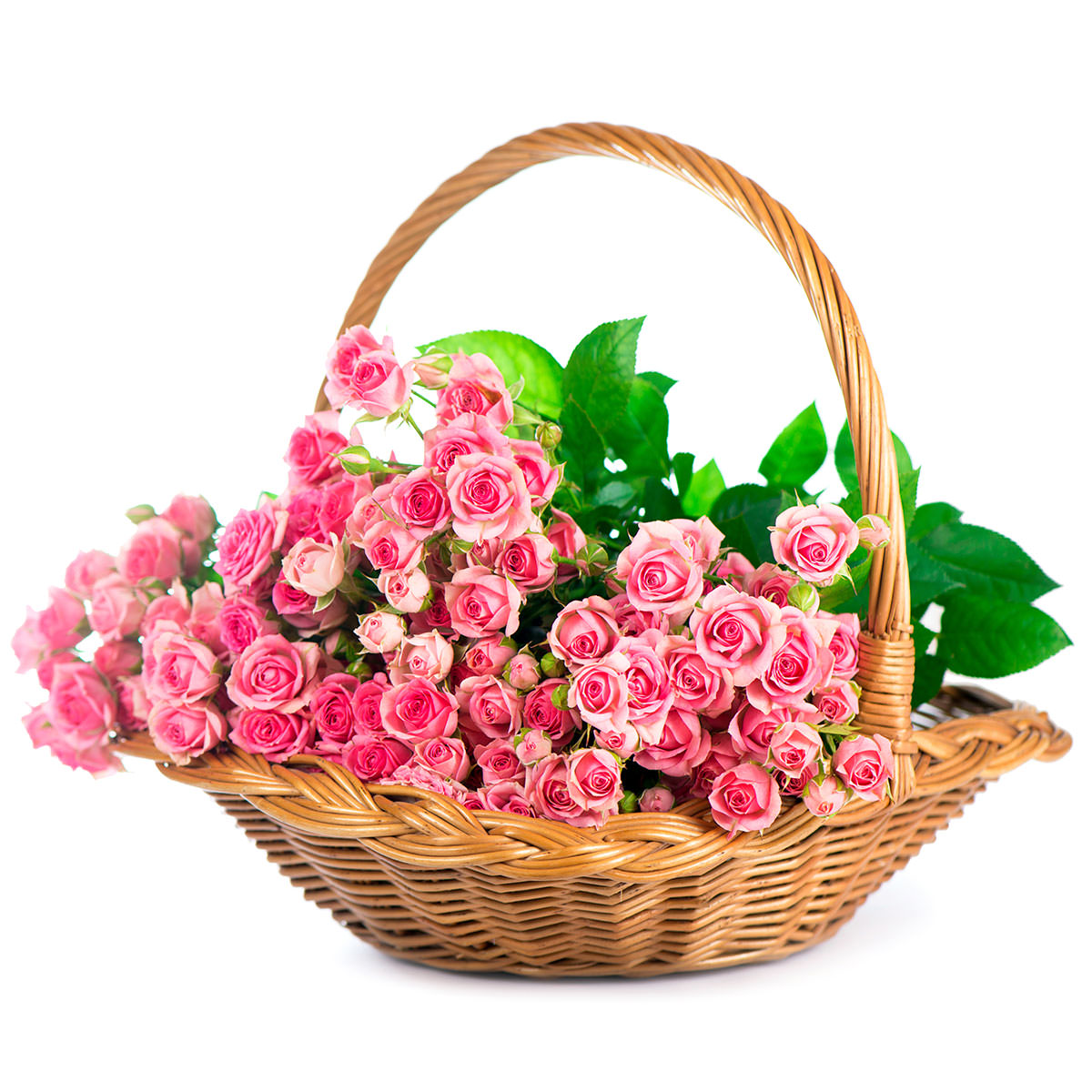 Роза кустовая розовая. Упаковка (Корзина, оазис, ящик).