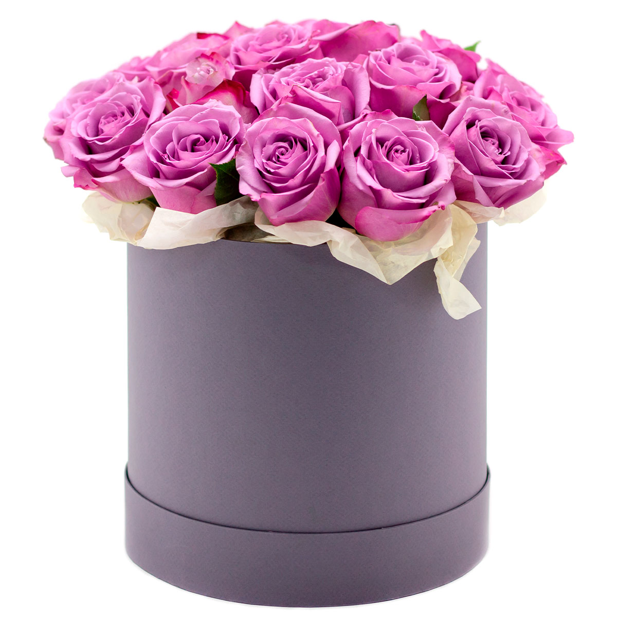 Роза одноголовая сиреневая. Упаковка (шляпная коробка, квадратный бокс, коробка сердце, оазис)