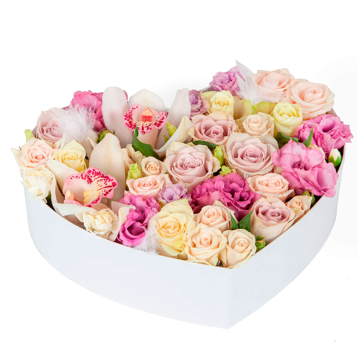 Цветы в коробке «Нежный флер» с доставкой по г Фокино (Приморский край): вы можете заказать букет в интернет-салоне цветов «Флормания» по цене от 3099 руб.