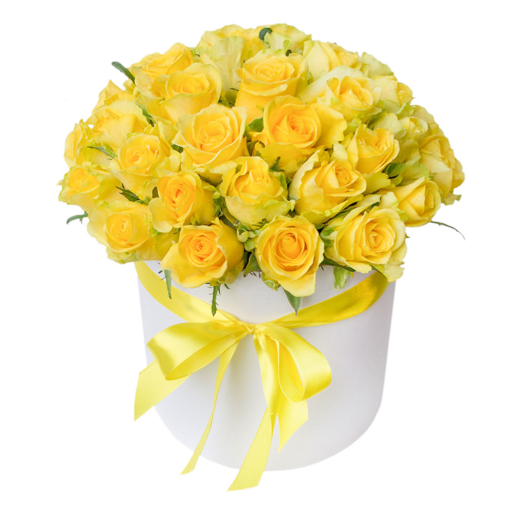 Цветы в коробке «Желтые Розы» с доставкой по г Фокино (Приморский край): вы можете заказать букет в цветочном салоне «Флормания» по цене от 3099 руб.