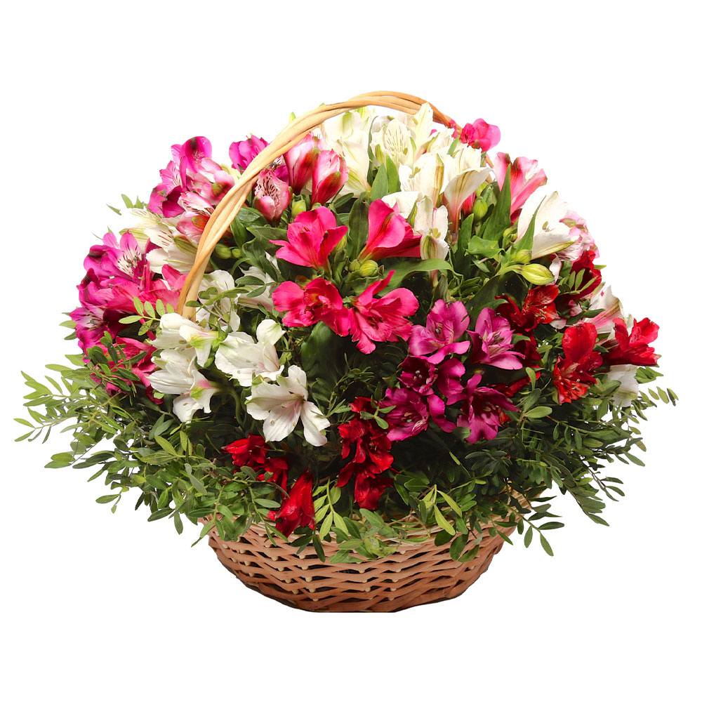 Цветы в корзинке «Краски альстромерий» с доставкой по г Фокино (Приморский край): вы можете заказать букет в интернет-магазине цветов «Флормания» по цене от 3599 руб.