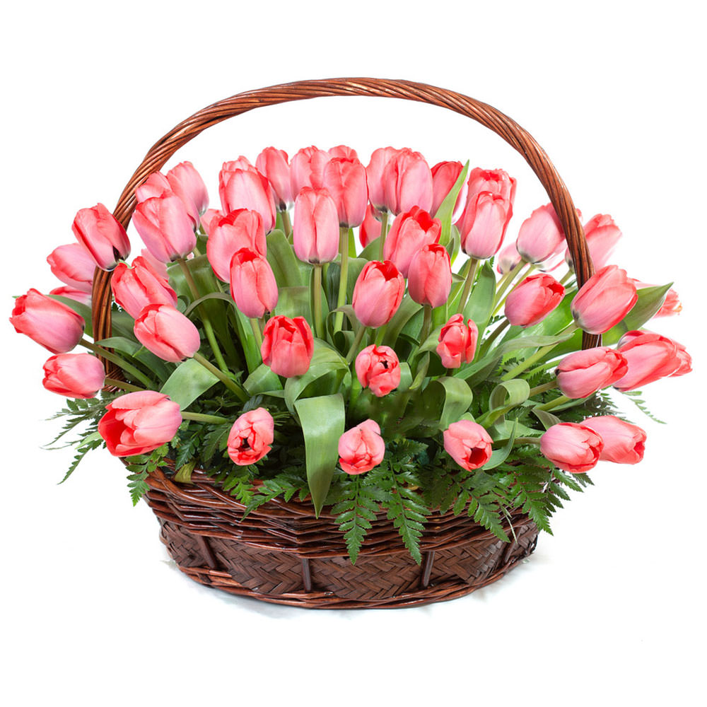 Цветы в корзинке «Розовые тюльпаны» с доставкой по г Фокино (Приморский край): вы можете заказать букет в супермаркете цветов «Флормания» по цене от 3599 руб.
